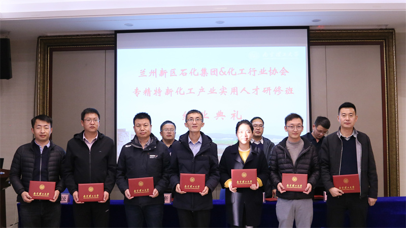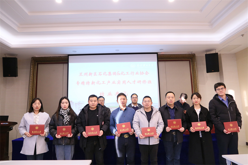 12月3日下午,由新区球王会体育集团与南京理工大学继续教育学院合作举办的“兰州新区专精特新化工产业实用人才研修班”顺利结业。结业仪式上,为学员颁发了结业证书。